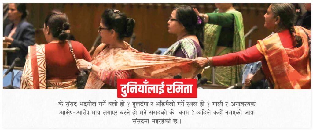 तर, राजनीतिक दल र तीनका सांसदको हर्कत देख्दा यो उखान परिवर्तन गर्नुपर्ने देखिन्छ– कहीँ नभएको जात्रा संसदमा ।