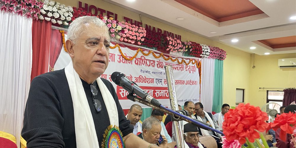 उद्योग वाणिज्य सङ्घ नवलपरासी (बर्दघाट–सुस्तापूर्व)को पाँचौँ साधारणसभाका अवसरमा आज गैँडाकोटमा आयोजित कार्यक्रममा उहाँले प्रतिबद्धताअनुसार काम भइरहेको बताए । ‘मैले निर्वाचनका बेला यस क्षेत्रको विकासका लागि केही प्रतिबद्धता गरेको थिएँ, तिमध्ये केही योजना हुने प्रक्रियामा छन् । बाँकी प्रतिबद्धता पूरा गर्न म कटिवद्ध भएर लाग्ने छु’, उनले भने ।