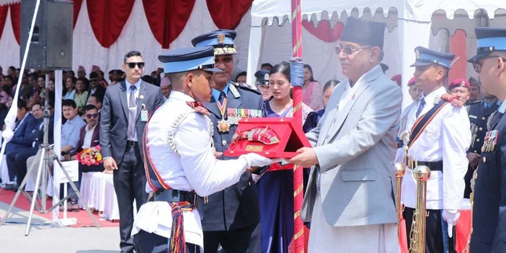 राष्ट्रिय प्रहरी प्रशिक्षण प्रतिष्ठानमा शुक्रबार आयोजित दीक्षान्त समारोहमा प्रधानमन्त्री पुष्पकमल दाहाल ‘प्रचण्ड’ले प्रथम, द्वितीय र तृतीय पुरस्कार प्रदान गरे । प्रशिक्षार्थी प्रहरी निरीक्षक पवन कुमारा परियार प्रथम, सगुन खड्का द्वितीय र आयुष ढुंगानाले तृतीय पुरस्कार प्राप्त गरेका छन् ।