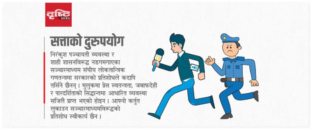 निरंकुश पञ्चायती व्यवस्था र शाही शासनविरुद्ध नडगमगाएका सञ्चारमाध्यम संघीय लोकतान्त्रिक गणतन्त्रमा सरकारको प्रतिशोधले कदापि तर्सिने छैनन् । मुलुकमा प्रेस स्वतन्त्रता, जबाफदेही र पारदर्शिताको सिद्धान्तमा आधारित व्यवस्था सजिलै प्राप्त भएको होइन ।