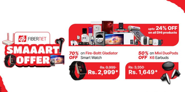 तीन हजार तीन सय ५० पर्ने मिभी डुओपोड्स के६ एअरबड्सलाई यो अफरमा भने ग्राहकहरूले मात्र एक हजार छ सय ४९ मा पाउन सक्नुहुनेछ । त्यस्तै नौ हजार नौ सय ९९ पर्ने फायर–बोल्ट ग्लेडिएटर स्मार्टवाचलाई यो अफरमा मात्र दुई हजार नौ सय ९९ मा लिन सक्नेछन् । डिजिटल होम इन्टरनेशनल (डिएचआइ)बाट साना देखि ठूला होम अपलायनसेसमा विशेष छुट लिन सकिने छ ।