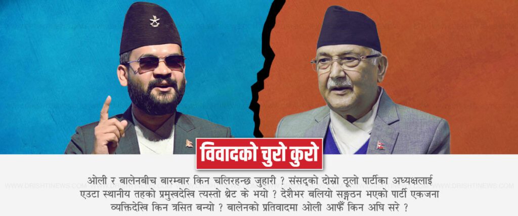 काठमाडौं । पछिल्लो समय नेकपा एमाले अध्यक्ष केपी शर्मा ओली र काठमाडौं महानगरका मेयर बालेन्द्र साह (बालेन)बीच जुहारी चल्दै आएको छ । ओलीले बालेनको कार्यशैलीप्रति आपत्ति जनाउँदै आएका छन् ।