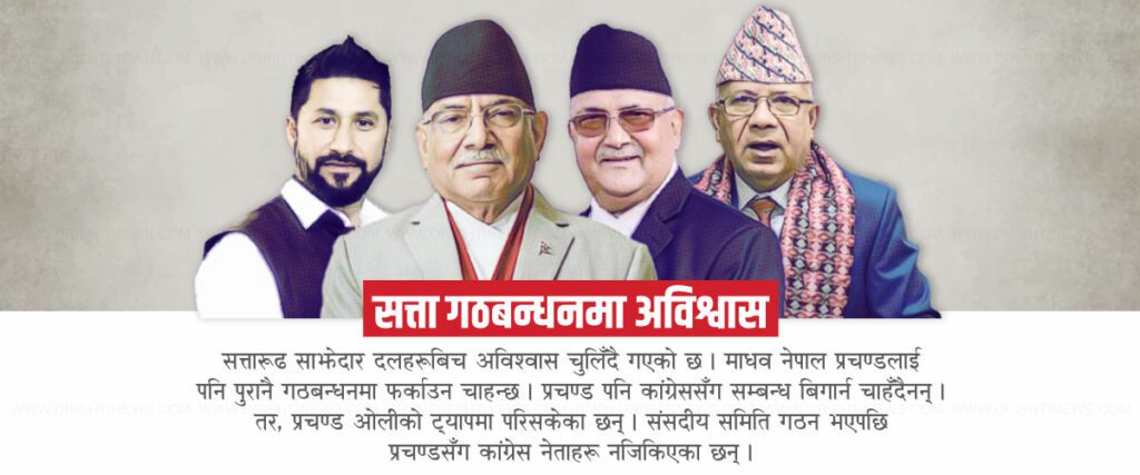 नेपाल प्रचण्डलाई पनि पुरानै गठबन्धनमा फर्काउन चाहन्छ । प्रचण्ड पनि कांग्रेससँग सम्बन्ध बिगार्न चाहँदैनन् । तर, प्रचण्ड ओलीको ट्यापमा परिसकेका छन् । ओलीले प्रचण्डलाई ०८४ सम्म प्रधानमन्त्री र त्यसपछि राष्ट्रपतिको आश्वासन दिएका छन् । यो आश्वासन काँग्रेससँगको गठबन्धन भत्काउनका निम्ति मात्रै हो भन्ने बुझ्न प्रचण्डले अझै केही समय कुर्नुपर्छ ।
