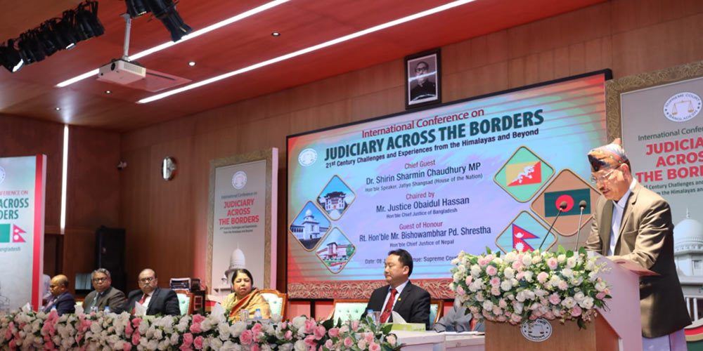 बङ्गलादेशको राजधानी ढाकामा शनिबार भएको न्यायपालिकासम्बन्धी अन्तर्राष्ट्रिय सम्मेलनमा उहाँले नेपालमा भएका न्यायिक सुधारका बारेमा जानकारी दिँदै न्यायपालिकाको पाँचवर्षे रणनीतिक योजना तयारी भइरहेको जानकारी दिए ।