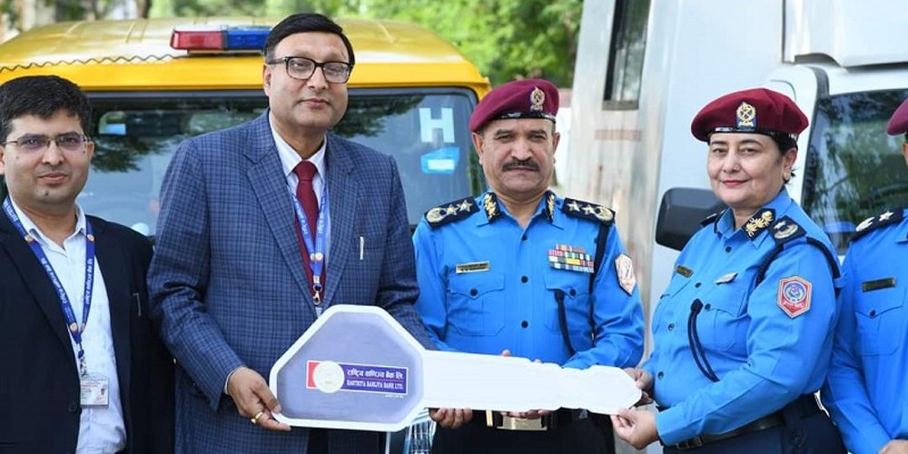 काठमाडौं । राष्ट्रिय वाणिज्य बैंक लिमिटेडले नेपाल प्रहरी अस्पताललाई २ वटा एम्बुलेन्स र २ वटा शववाहन दिएको छ ।नक्सालस्थित प्रहरी प्रधान कार्यालयमा आयोजित समारोहमा प्रहरी महानिरीक्षक वसन्तबहादुर कुँवरलाई बैंकका प्रमुख कार्यकारी अधिकृत देवेन्द्ररमण खनालले उक्त एम्बुलेन्स र शववाहनको चाबी हस्तान्तरण गरेका हुन् ।