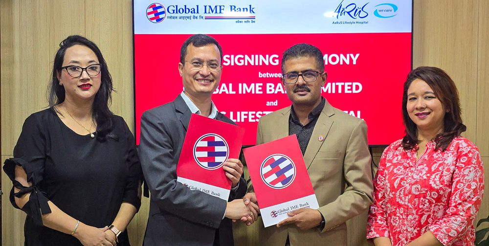 काठमाडौं । ग्लोबल आइएमई बैंक लिमिटेड र आरुष लाइफस्टाइल हस्पिटल प्रालिबीच बैंकको कार्ड तथा मोबाइल बैंकिङ प्रयोगकर्ताहरुलाई आरुष लाइफस्टाइल हस्पिटल प्रालिका विभिन्न सेवामा ३० प्रतिशतसम्म छुट प्रदान गर्ने समझदारी पत्रमा हस्ताक्षर सम्पन्न भएको छ ।