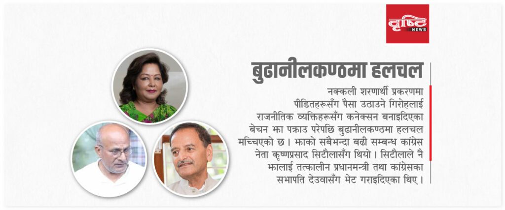 काठमाडौं । नक्कली भुटानी शरणार्थी प्रकरणमा पीडितहरूसँग पैसा उठाउने गिरोहलाई राजनीतिक व्यक्तिहरूसँग कनेक्सन बनाइदिएका बेचन झा पक्राउ परेपछि बुढानीलकण्ठमा हलचल मच्चिएको छ । प्रहरीले शुक्रबार भारतबाट पक्राउ गरेर काठमाडौँ ल्याएका झामाथि अनुसन्धान गर्न जिल्ला अदालत काठमाडौँले ७ दिन थुनामा राख्न अनुमति दिएको छ ।