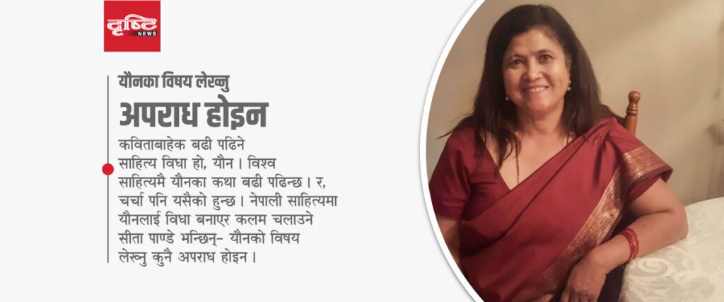 कविताबाहेक बढी पढिने साहित्य विधा हो, यौन । विश्व साहित्यमै यौनका कथा बढी पढिन्छ । र, चर्चा पनि यसैको हुन्छ । तर, नेपाली साहित्यमा यौनलाई विधा बनाएर कलम चलाउने लेखकहरू कमै छन् । तीमध्येकी हुन्, सीता पाण्डे ।