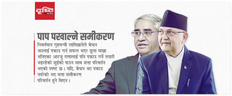 एजेन्डाविहीन कांग्रेस–एमाले गठबन्धन सरकार आधा आधा कार्यकाल चलाउने सहमति भए पनि २०८२ मा हुने कांग्रेस महाधिवेशन अगाडि सरकार ढल्ने निश्चित छ । घमन्डी, अहम्, निरंकुश, स्वेच्छाचारी, छलकपटलगायतका पर्याय बनेर २०७८ असार २८ गते सत्ताबाट बाहिरिएका ओलीलाई बोक्न कांग्रेस बाध्य भएको छ । यो राजनीतिक समीकरणभन्दा पनि आफ्नो पाप पखाल्ने समीकरण हो । यो समीकरणले न त संविधान संशोधन गर्न सक्छ, नत भ्रष्टाचारीहरू माथि कारबाही नै गर्न सक्छ ।