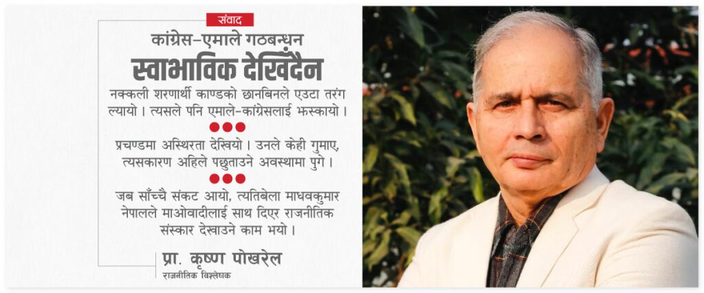 कांग्रेस–एमाले गठबन्धन, संविधान संशोधन, समाजवादी मोर्चा, माओवादी र एकीकृत समाजवादीको भविष्यलगायतका विषयमा राजनीतिक विश्लेषक प्रा. कृष्ण पोखरेलसँग दृष्टिले गरेको कुराकानीको सम्पादित अंश–