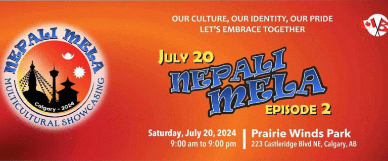 ‘हाम्रो संस्कृति, हाम्रो पहिचान, हाम्रो गौरव’ भन्ने नारासहित क्यालगरी सोसाइटी, क्यानडाले ‘नेपाली मेला’को आयोजना गर्न लागेको हो । मेलाको यो दोस्रो संस्करणमा नेपाली गायन क्षेत्रका मेगास्टारलाई दर्शकसमक्ष प्रस्तुत गर्न पाउँदा खुसी लागेको आयोजकमध्येका एक श्रीकान्त अर्यालले बताए ।