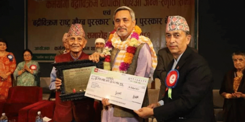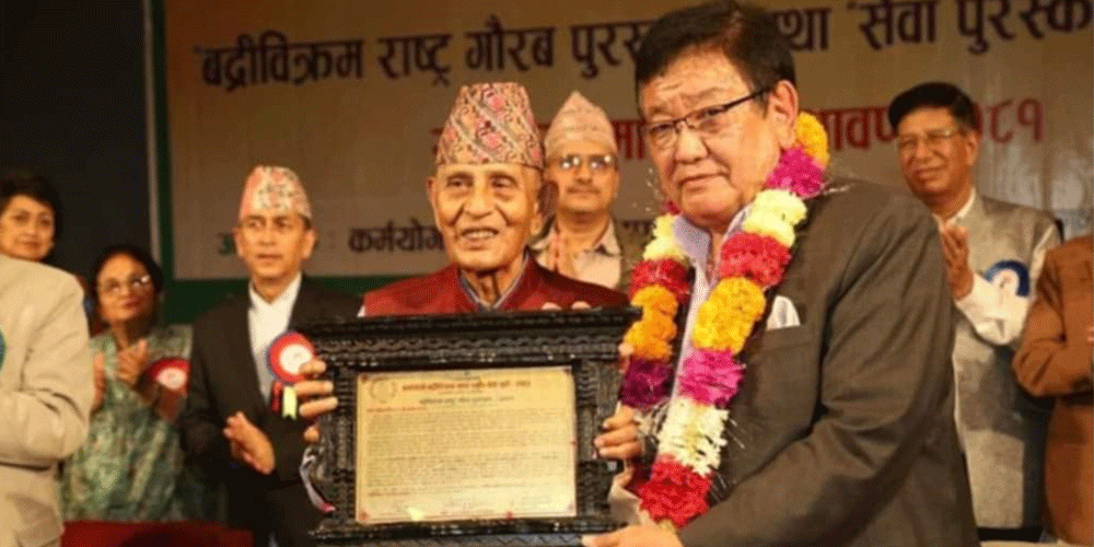 काठमाडौं । विगत २८ वर्षदेखि सामाजिक सेवाका क्षेत्रमा क्रियाशील संस्था कर्मयोगी बद्रीविक्रम थापा स्मृति सेवा गुठीले दुई व्यक्तित्वलाई पुरस्कृत गरेको छ ।