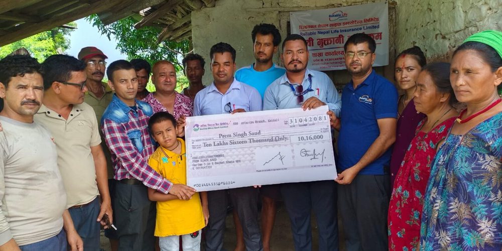 सवारी दुर्घटनामा आफ्ना बीमितको ज्यान गुमेपछि रिलायबल नेपाल लाइफ इन्स्योरेन्स कम्पनीले बीमितका आश्रित परिवारलाई १० लाख १६ हजार रुपैयाँ मृत्यु दाबी भुक्तानी दिएको छ ।