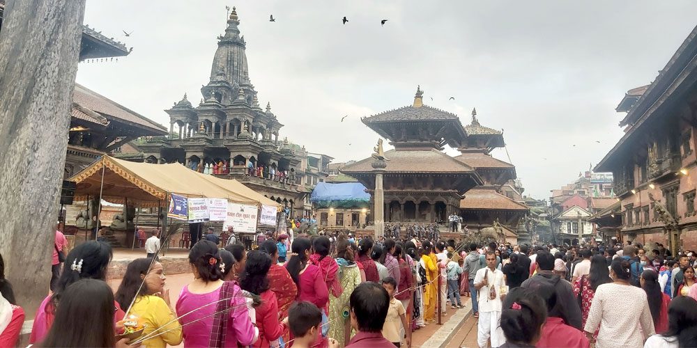 काठमाडौं । ललितपुरको पाटनस्थित कृष्ण मन्दिरमा भक्तजनको घुइँचो लागेको छ । आज श्रीकृष्ण जन्माष्टमीका अवसरमा पूजा आराधनाका लागि बिहानदेखि नै मन्दिरमा दर्शनार्थीको घुइँचो लागेको हो ।