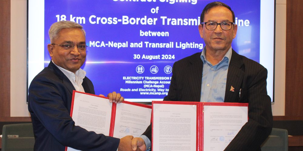 काठमाडौँ । नेपाल सरकारको लगानी र अमेरिकी सरकारको अनुदानमा कार्यान्वयन भइरहेको एमसिसी नेपाल कम्प्याक्ट कार्यक्रमअन्तर्गतको विद्युत् प्रसारण आयोजनाअन्तर्गत १८ किमि सीमापार प्रसारण लाइन निर्माण सम्झौतामा एमसिए-नेपालले हस्ताक्षर गरेको छ ।