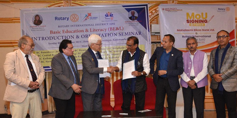 काठमाडौं । अग्रणी जीवन बीमा कम्पनी सानिमा रिलायन्स लाइफ इन्स्योरेन्सले संस्थागत सामाजिक उत्तरदायित्व कार्यक्रमअन्तर्गत अन्तर्राष्ट्रिय सहयोग संस्था रोटरी इन्टरनेशनल डिस्ट्रिक ३२९२ को सहकार्यमा देशका विभिन्न भागमा सञ्चालन हुने ‘आधारभूत शिक्षा तथा साक्षरता’ कार्यक्रममार्फत पिछडिएका वर्गको साक्षरता अभिवृद्धि गर्ने उद्देश्यले सहयोग गर्न दुई संस्थाबीच यही भदौ २३ गते सहमति हस्ताक्षर गरेको छ ।