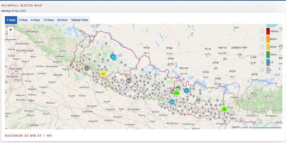 आगामी २४ घण्टामा कोशी, बागमती, गण्डकी, लुम्बिनी, कर्णाली र सुदूरपश्चिम प्रदेशका केही स्थानमा मेघगर्जन र चट्याङसहित हल्कादेखि मध्यम वर्षाको सम्भावना छ । गण्डकी, लुम्बिनी,कर्णाली र सुदूरपश्चिम प्रदेशका एक–दुई स्थानमा भारी वर्षाको पनि सम्भावना रहेको जनाउँदै विभागले ती क्षेत्रका सर्वसाधाणलाई सचेत रहन आग्रह गरेको छ ।