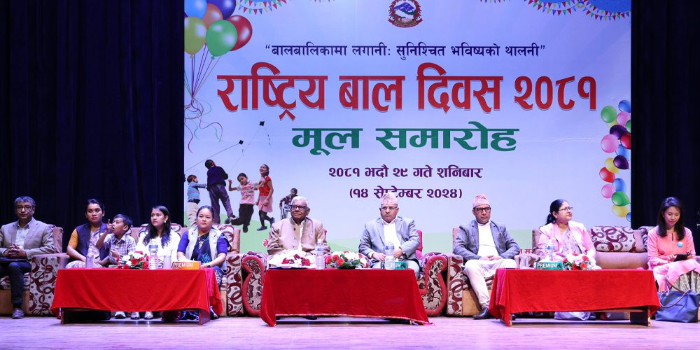 ‘बालबालिकामा लगानीः सुनिश्चित भविष्यको थालनी’ भन्ने मूल नारासहित आज देशैभरि राष्ट्रिय बाल दिवस मनाइएको छ ।