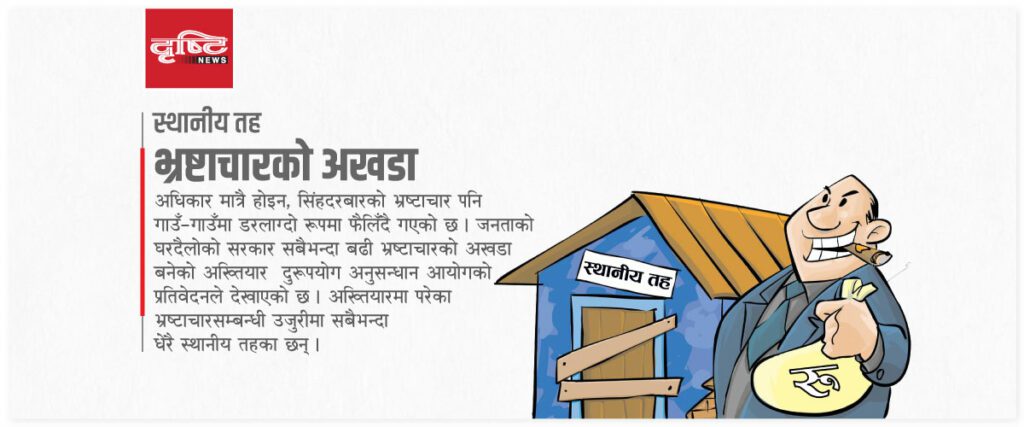 अधिकार मात्रै होइन, सिंहदरबारको भ्रष्टाचार पनि गाउँ–गाउँमा डरलाग्दो रुपमा फैलिँदै गएको छ । जनताको घरदैलोको सरकार सबैभन्दा बढी भ्रष्टाचारको अखडा बनेको अख्तियार दुरुपयोग अनुसन्धान आयोगको प्रतिवेदनले देखाएको छ । अख्तियारमा परेका भ्रष्टाचारसम्बन्धी उजुरीमा सबैभन्दा धेरै स्थानीय तहका छन् ।