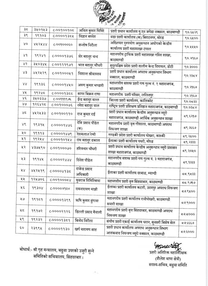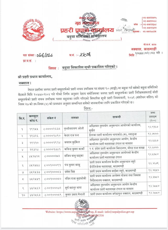 बढुवा सिफारिस हुनेहरुमा २०६४ र २०६६ मा बढुवा भएका र २०६७ सालमा भर्ना भएका इन्सपेक्टरहरु छन् । २०६७ का ब्याचबीच चर्काे प्रतिस्पर्धा हुँदा बढुवा लम्बिएको थियो ।