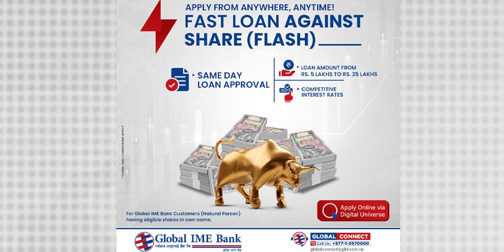 ग्लोबल आइएमई बैंकको अनलाइन प्लेटफर्ममार्फत सेयर धितो कर्जा लिन मिल्ने