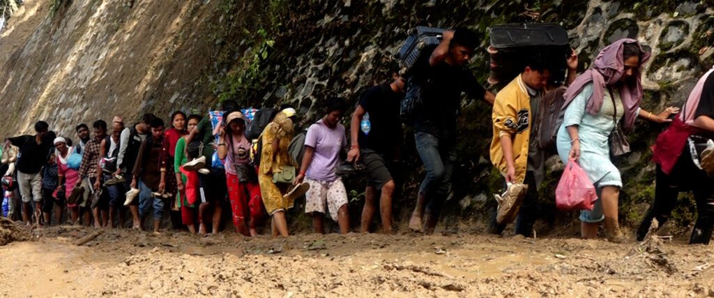 काठमाडौं । अविरल वर्षाका कारण आएको बाढी र पहिरोबाट विपी राजमार्ग अवरुद्ध भएपछि यात्रुहरू पैदलै फर्कन थालेका छन् ।