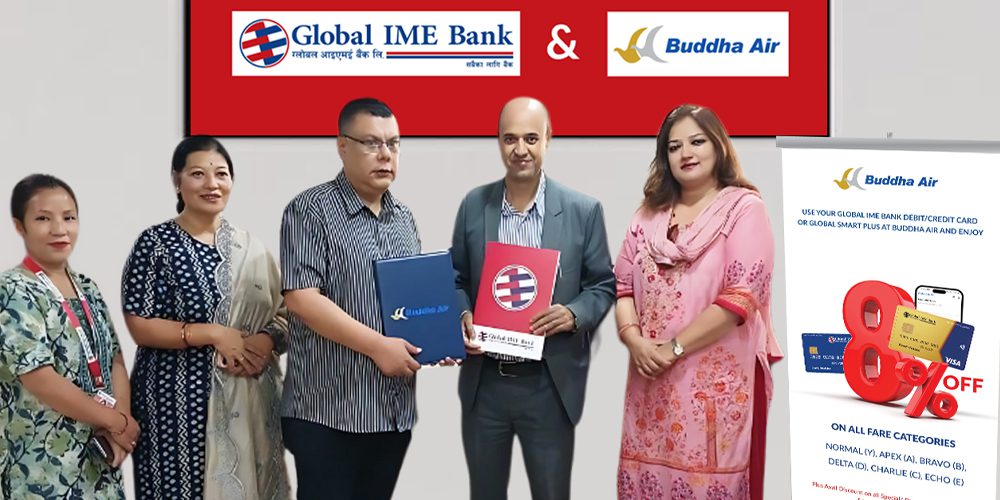 समझदारी अनुसार ग्लोबल आइएमई बैंकका डेबिट, क्रेडिट कार्डवाहक एवम् बैंकको मोबाइल बैंकिङ्ग एप्लिकेशन ‘ग्लोबल स्मार्ट प्लस’ प्रयोगकर्ताहरुले बुद्ध एयरको टिकटको खरिदमा ८ प्रतिशत छुट पाउनेछन् ।