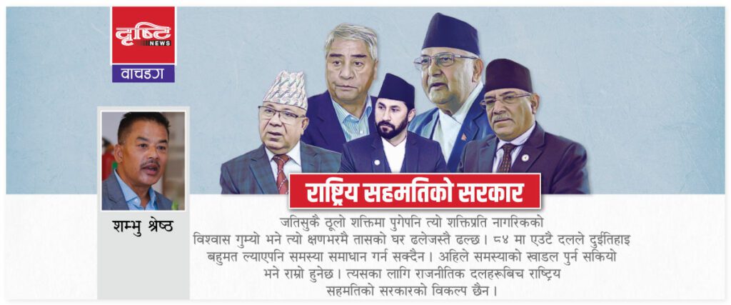 जतिसुकै ठूलो शक्तिमा पुगेपनि त्यो शक्तिप्रति नागरिकको विश्वास गुम्यो भने त्यो क्षणभरमै तासको घर ढलेजस्तै ढल्छ । ८४ मा एउटै दलले दुईतिहाइ बहुमत ल्याएपनि समस्या समाधान गर्न सक्दैन । अहिले समस्याको खाडल पुर्न सकियो भने राम्रो हुनेछ । त्यसका लागि राजनीतिक दलहरूबिच राष्ट्रिय सहमतिको सरकारको विकल्प छैन ।