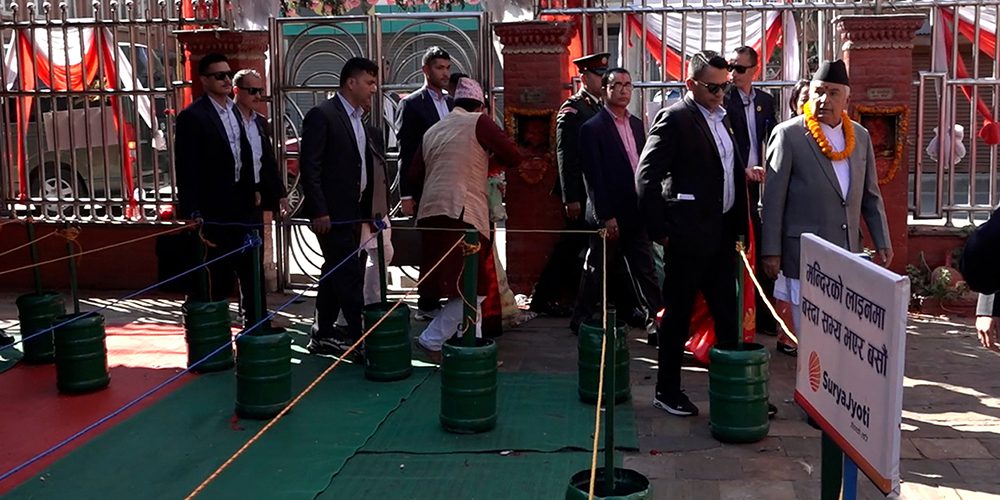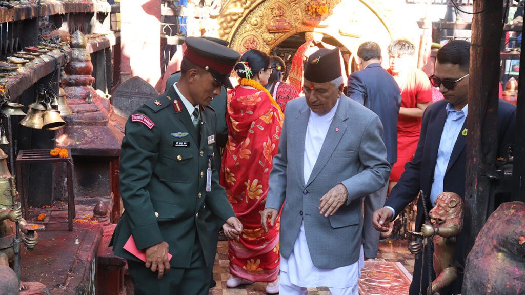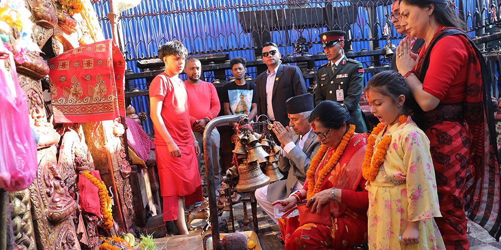काठमाडौ । राष्ट्रपति रामचन्द्र पौडेलले बडादसैँ २०८१ का अवसरमा आज काठमाडौँ उपत्यकाका विभिन्न शक्तिपीठको दर्शन एवं पूजाअर्चना गरेका छन् । राष्ट्रपति पौडेलसँगै प्रथम महिला सविता पौडेलले समेत उपत्यकाका विभिन्न शक्तिपीठको दर्शन गरेका छन् ।