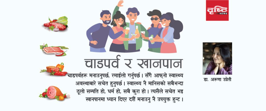 चाडपर्वहरू मनाउनुपर्छ, रमाइलो गर्नुपर्छ । सँगै, आफ्नो स्वास्थ्य अवस्थाबारे सचेत हुनुपर्छ । स्वास्थ्य नै मानिसको सबैभन्दा ठूलो सम्पत्ति हो, धर्म हो, सबै कुरा हो । त्यसैले सचेत भई खानपानमा ध्यान दिएर दशैं मनाउनु नै उपयुक्त हुन्छ ।