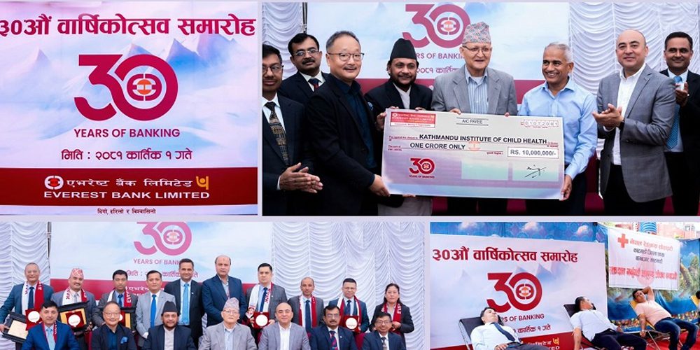 काठमाडौं । एभरेष्ट बैंकले ३० औं वार्षिकोत्सव भव्यताका साथ मनाएको छ । उक्त्त अवसरमा बैंकको प्रधान कार्यालय, लाजिम्पाटमा रक्तदान कार्यक्रम, बैंकमा लामो समयसम्म सेवा गर्ने कर्मचारीहरुलाई दीर्घ सेवा पदक तथा कदर पत्र वितरण समेत गरेको छ ।