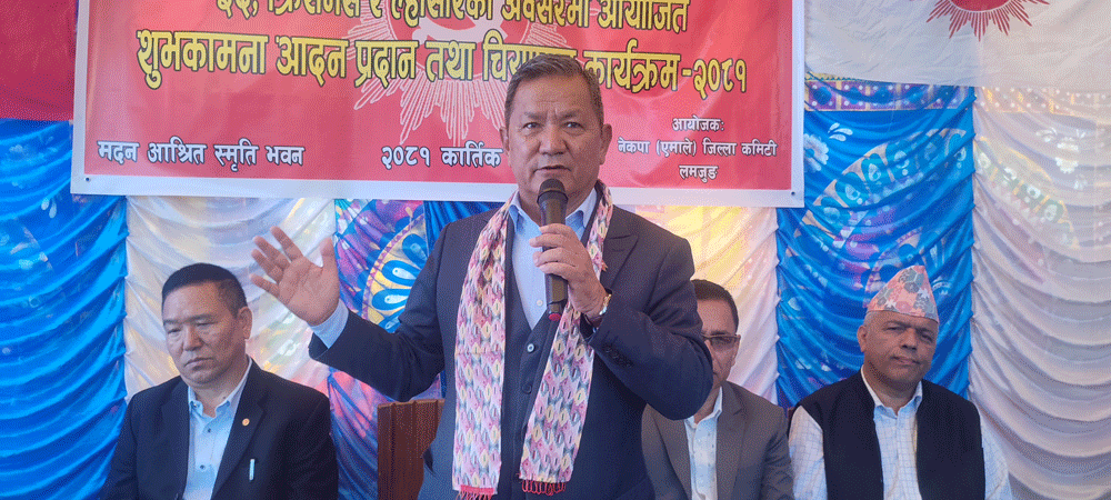 नेपाल कम्युनिष्ट पार्टी (एमाले) जिल्ला कमिटीद्वारा दसैँ, तिहार, नेपाल संवत्, छठका अवसरमा बेँसीसहर नगरपालिका–८ मा आज बिहान आयोजित कार्यक्रममा उहाँले सरकारले बाढीपहिरो पीडित, सहकारीपीडित, कृषक, व्यवसायी, निर्माण व्यवसायीलगायत सबै पेसाकर्मीलाई सहयोग पुग्नेगरी सरकारले काम गरिरहेको बताएका हुन् ।