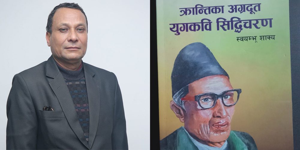 काठमाडौैं । युगकवि सिद्धिचरणका कालजयी रचनाहरूको समीक्षा गरिएको पुस्तक ‘क्रान्तिका अग्रदूत युगकवि सिद्धिचरण’ बजारमा आएको छ । साहित्यकार, समीक्षक तथा समालोचक स्वयम्भू शाक्यद्वारा लिखित पुस्तक सुन्दर स्वदेश पब्लिकेशनले हालै बजारमा ल्याएको हो ।