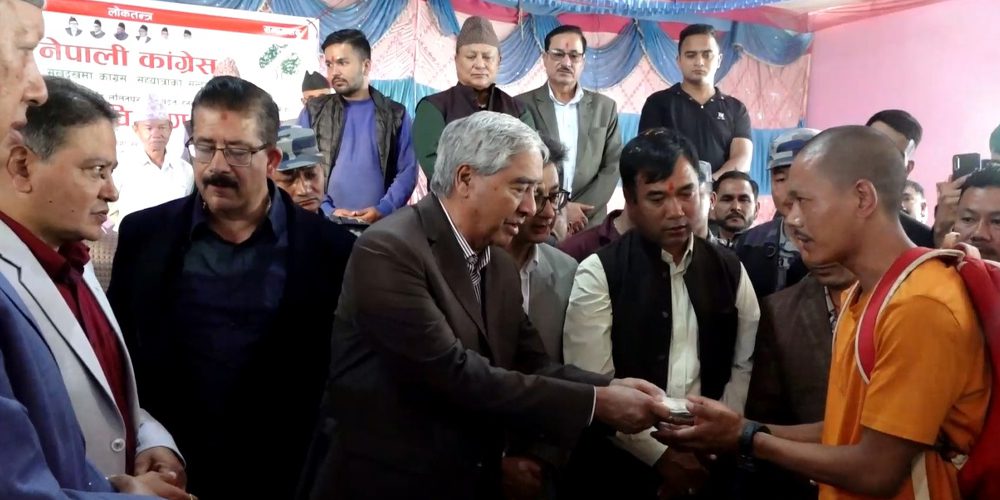 कार्यक्रमका कांग्रेस सभापति देउवाले बाढी पहिरोका कारण भएको धन जनप्रति दुख व्यक्त गर्दै मृतकप्रति श्रद्धाञ्जली व्यक्त गरे । उनले दुखका बेला कांग्रेस सदैव जनतामाझ रहने प्रतिवद्धता जनाए ।