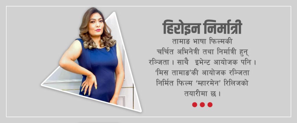 पहिलोपटक ‘मिस तामाङ’मा सहभागी भएपछि मोडलिङ, अभिनय हुँदै इभेन्ट व्यवस्थापक बनेकी रञ्जिताले हाल ‘मम्स इन्टरनेशनल’ नामक संस्था चलाउँदै आएकी छिन् । एभरेष्ट फेसन होम हुँदै मम्स इन्टरनेसनल नेपाल प्रालिमार्फत ‘मिस तामाङ’ आयोजना गर्दै आएकी रञ्जिता निर्मित फिल्म ‘म्हारमेन’ अहिले रिलिजको तयारीमा छ । अभिनेत्री तथा मम्स इन्टरनेसनल नेपालकी अध्यक्ष रज्जिता लामासँग रेजिना पाण्डेको जम्काभेट