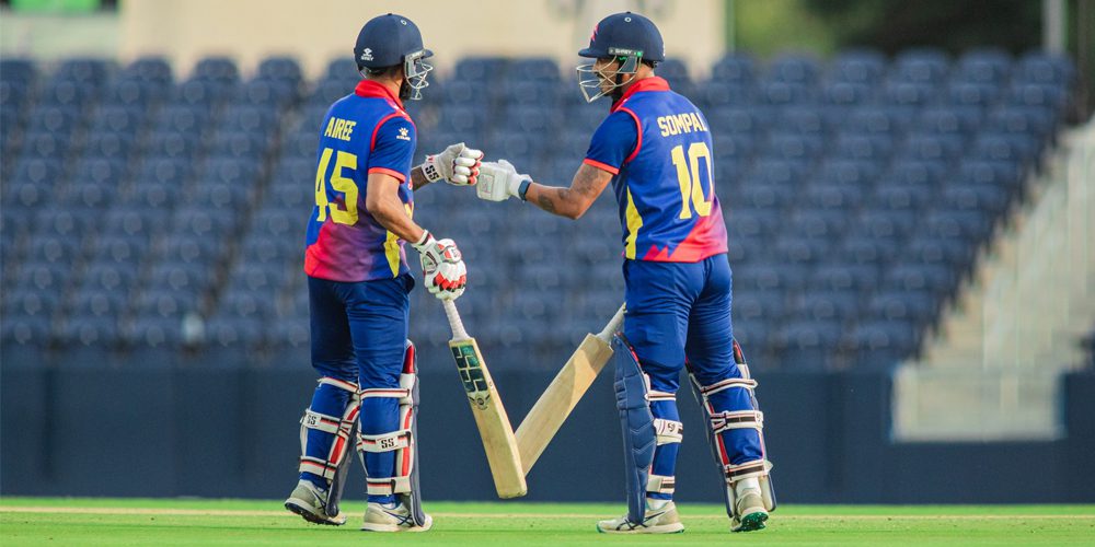 त्यसपछि सोमपाल कामीले २७ बलमा चार चौका र दुई छक्कासहित ४६ रन बनाए । दीपेन्द्रसिंह ऐरीले ३८ बलमा एक चौका र एक छक्कासहित ३१ रन बनाए । करण केसीले पाँच तथा सन्दीप लामिछानेले दुई रन बनाए ।
