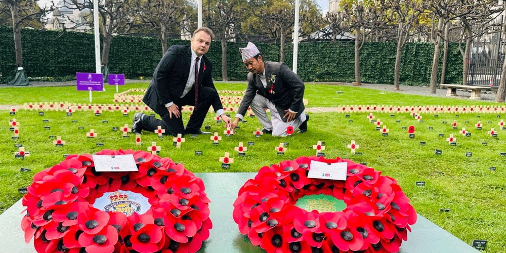 सो अवसरमा भूतपूर्व गोर्खा सैनिकहरू भबिन राई, ताईकाजी गुरुङ र भूमिराज राईसहित मेयर साम्पाङ र सांसद ट्रिस्टान ओस्बोर्नले संसद परिसरमा रहेको मेमोरियल गार्डेनमा अमर सहिदहरुको सम्मानमा क्रस गाडेर पप्पीफूल अर्पण गरे ।