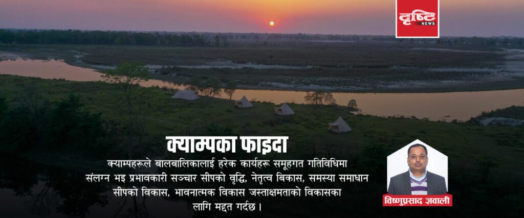 यसरी बालबालिकाहरु सुरक्षित वातावरणमा रमाइलो अनुभूतिका साथ आफ्नो रुचीअनुसारका खोज, अन्वेषण, सिकाइ स्वतन्त्रताका साथ गरी दीर्घकालिन सिकाइका लागि आधार तयार गर्नका लागि यस्ता क्याम्पहरुले महत्वपूर्ण भूमिका खेल्दछन् ।