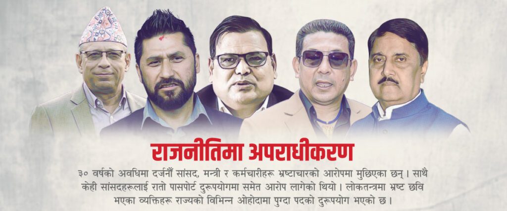 जनताबाट चुनिएका सांसद र मन्त्री नै अपराधमा मुछिदा व्यवस्था नै बदनाम हुन पुगेको छ । अझ राजनीतिक संरक्षणमा उनीहरूले उन्मुक्ति पाउँदा राजनीतिप्रति नै आमनागरिकको वितृष्णा बढेको छ । पुराना मात्रै होइन, नयाँ आएका दलका नेताहरू पनि काण्डैकाण्डमा फसेपछि विकल्प के भन्ने प्रश्नसमेत उठ्न थालेको छ । कानुन बनाउने ठाउँमा भेटिनुपर्ने जनप्रतिनिधि प्रहरी खोरमा कोचिनु विडम्बना हो । भ्रष्ट छविका व्यक्तिलाई निर्वाचनकै बेला अंकुश नलगाउने हो भने विकृति अझै बढ्न सक्छ । तसर्थ, जनताले मतदान गर्ने बेलामै गम्भीर भएर सोच्न जरुरी छ ।