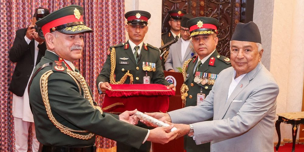काठमाडौँ । राष्ट्रपति रामचन्द्र पौडेलले भारतीय स्थल सेना अध्यक्ष उपेन्द्र द्विवेदीलाई मानार्थ प्रधानसेनापतिको दर्ज्यानी चिन्ह तथा खड्ग प्रदान गरेका छन् ।