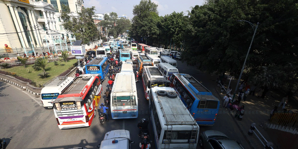 काठमाडौं । सरकारको नेतृत्व गरिहरेको दल एमालेले आयोजना गरेको प्रदर्शनका कारण काठमाडौं उपत्यकाको ट्राफिक व्यवस्था अस्तव्यस्त बनेको छ । कार्यालय समयमा घरबाट निस्किएका काठमाडौंवासी जामको सास्तीमा परेका छन् ।