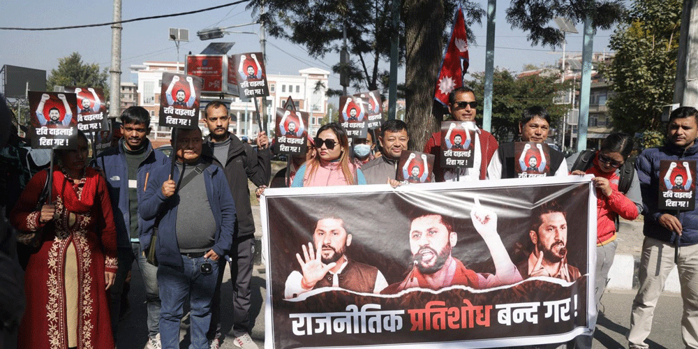 काठमाडौं । सहकारी ठगी प्रकरणमा पक्राउ परेका राष्ट्रिय स्वतन्त्र पार्टी (रास्वपा)का सभापति रवि लामिछानेको बयान भइरहँदा नेता कार्यकर्ताले माइतीघरमा रिहाइको माग गर्दै प्रदर्शन गरेका छन् । रास्वपा केन्द्रीय सदस्य ज्वाला संग्रौलासहित रास्वपा नेता कार्यकर्ता र रविका समर्थकले माइतीघरमा प्रदर्शन गरेका हुन् ।