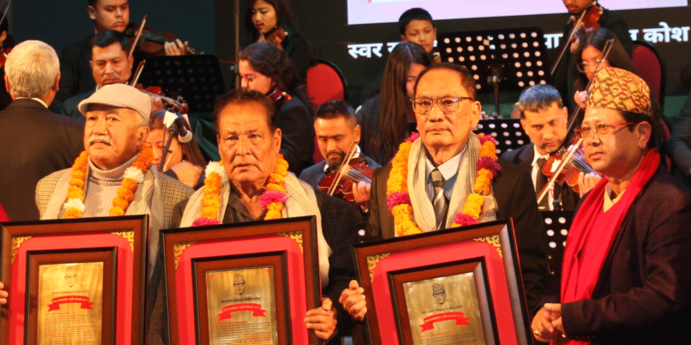 काठमाडौं । स्वरसम्राट नारायण गोपालको ३४औँ स्मृति दिवसका अवसरमा तीन श्रष्टालाई सम्मान गरिएको छ । नारायण गोपाल सङ्गीत कोषले बुधबार साँझ एक कार्यक्रम आयोजना गरी ‘नारायण गोपाल स्मृति सम्मान २०८१’ मार्फत सङ्गीततर्फ सङ्गीतकार बुलु मुकारुङ, गायनतर्फ कुमार बस्नेत र गीत रचनातर्फ शिवशङ्कर थापालाई सम्मान गरिएको हो ।