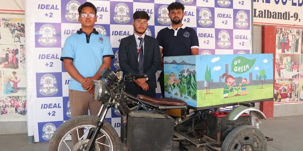 बरहथवा । सर्लाहीमा कक्षा ११ र १२ मा पढ्दै गरेका तीन विद्यार्थी मिलेर विद्युतीय ट्रयाक्टर बनाएका छन् । लालबन्दी नगरपालिका–९ बस्तीपुरस्थित आइडियल कोएड एकेडेमीका छात्रले विद्युतीय ट्रयाक्टर निर्माण गरेका हुन्।