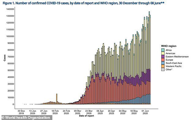 यूरोपियन देशमा कोरोना संक्रमणमा कमी आएपनि विश्वमा संक्रमितको संख्या बढ्दै गएको छ । आइतबार एक लाख ३६ हजार जना नया संक्रमितको पहिचान भएको विश्व स्वास्थ्य संगठनले जनाएको छ । एकैदिन यतीधेरै संक्रमित पहिचान भएको यो नयाँ रेकर्ड हो ।