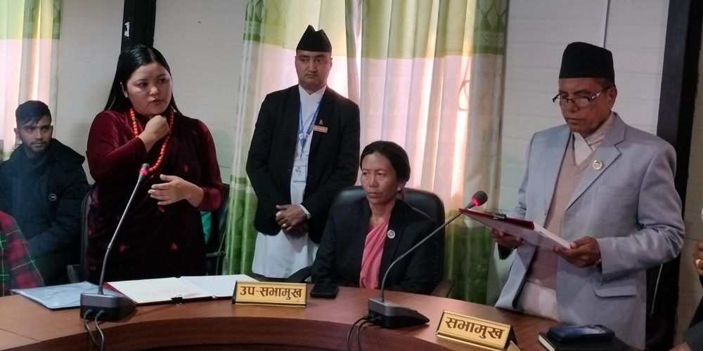 नेपाली कांग्रेसको समानुपातिकतर्फबाट निर्वाचित थापालाई प्रदेशसभा सचिवालायमा आयोजित एक कार्यक्रमका बीच सभामुख कृष्णप्रसाद धितालले शपथग्रहण गराएका हुन् ।