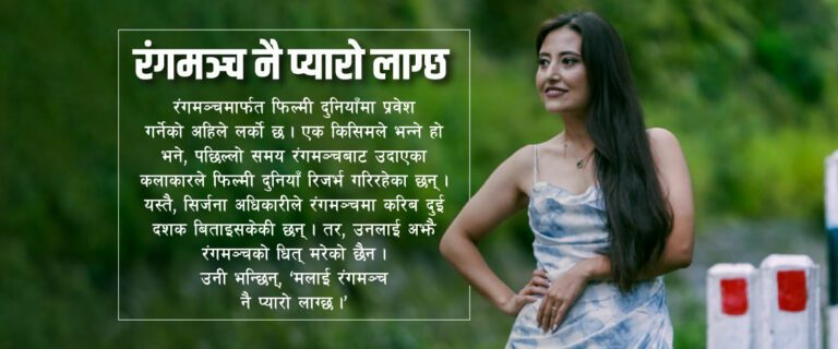 रहर र इच्छाले यो क्षेत्रमा लागेकी हुँ । अहिले मेरो लागि रंगमञ्च साहस, उर्जा र कर्मथलो बनेको छ । मलाई अझै लाग्छ, यो क्षेत्रमा आनन्दले कर्म गर्न सक्छु ।