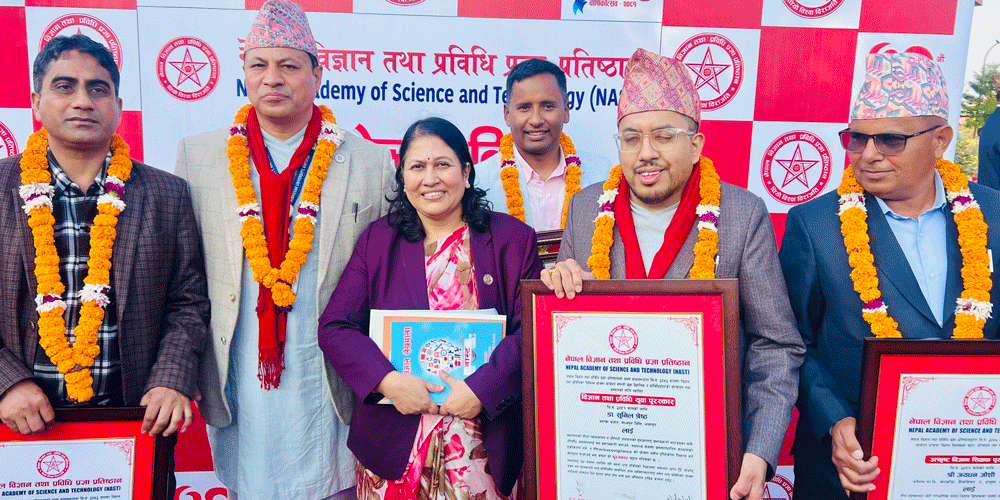 काठमाडौं । नेपाल विज्ञान तथा प्रविधि प्रज्ञा प्रतिष्ठान (नास्ट)ले लोकप्रिय गीतकार एवं वैज्ञानिक डा शिव सुबेदीलाई सम्मान गरेको छ । नास्टको ४२औं स्थापना दिवशको अवसरमा बिहीबार राजधानीमा आयोजित समारोहमा भूकम्पविद् एवं गीतकार सुबेदी सम्मानीत भएका हुन् ।