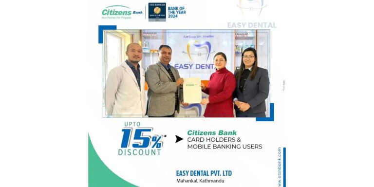 काठमाडौं । सिटिजन्स बैंकका ग्राहकले महाङ्काल, काठमाडौंस्थित इजी डेन्टल प्रालिमा विशेष छुट पाउने भएका छन् ।