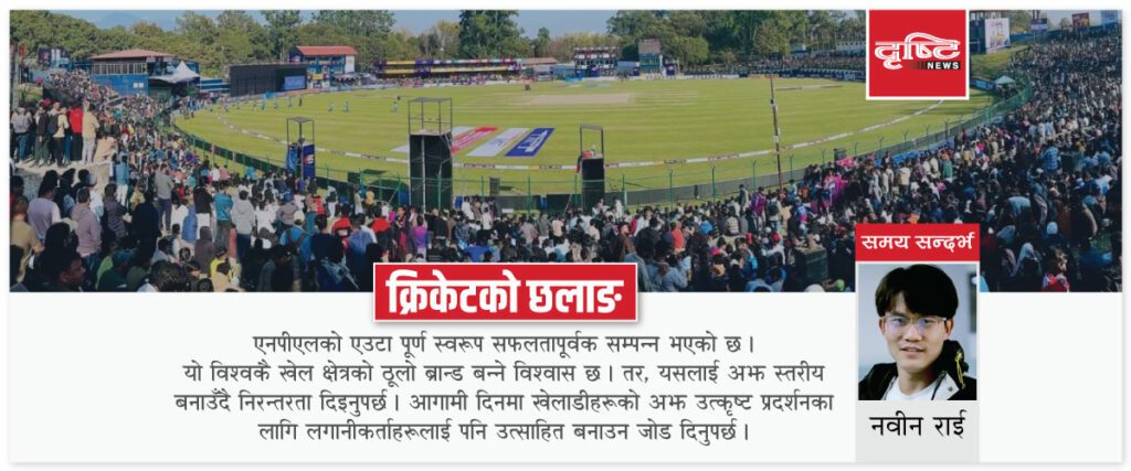 एनपीएलको एउटा पूर्ण स्वरूप सफलतापूर्वक सम्पन्न भएको छ । यो विश्वकै खेल क्षेत्रको ठूलो ब्रान्ड बन्ने विश्वास छ । यसका लागि आयोजक क्यान बधाईको पात्र भएको छ । आगामी संस्करण अझ परिष्कृत र भव्यतापूर्वक आयोजना हुन सकुन् भन्ने शुभकामनाको हकदार भएको छ ।